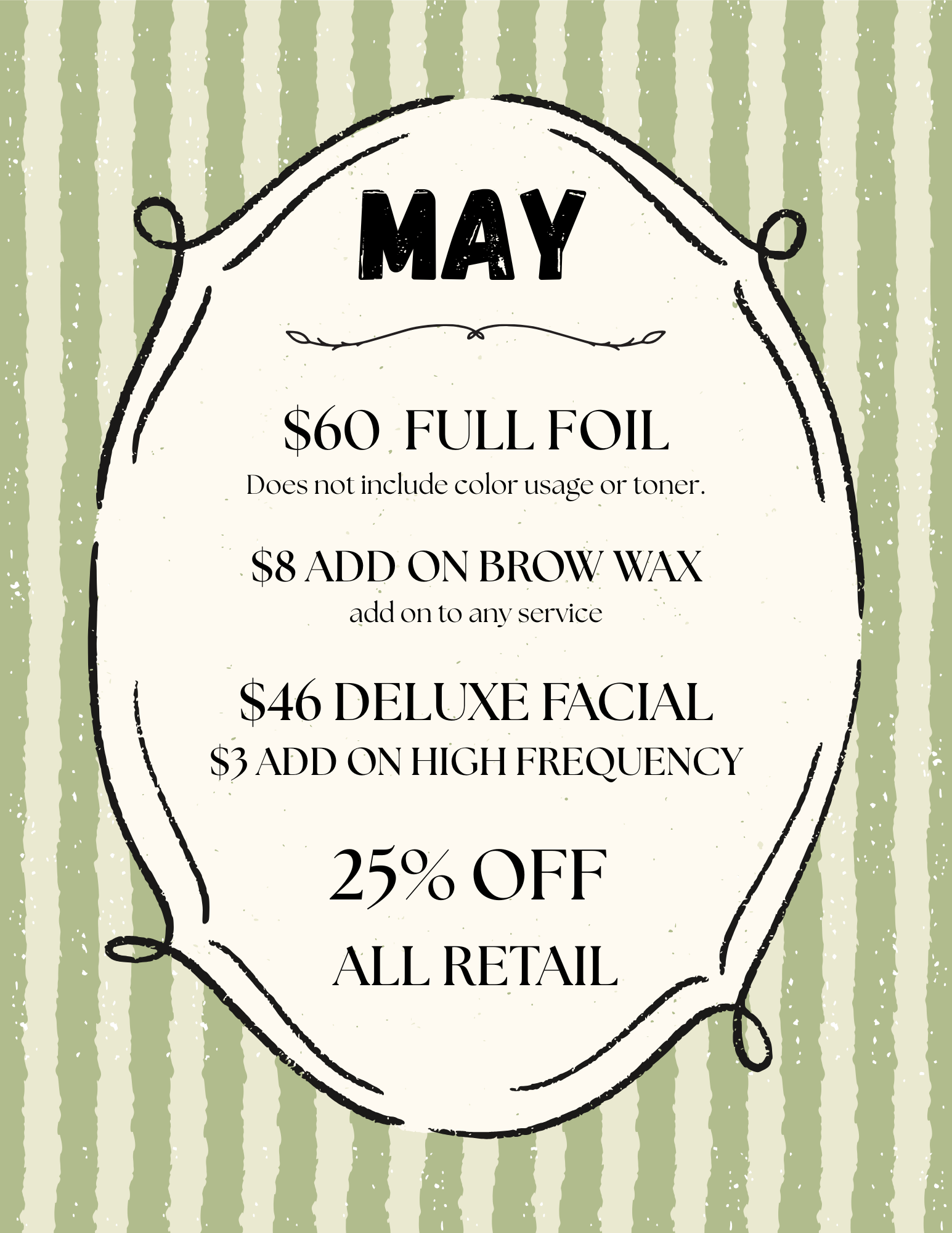 May has arrived, and it’s the perfect time to refresh your look for the warmer weather ahead. Whether you’re dreaming of brighter hair, clearer skin, or just need to restock your favorite products, our May promotions are designed to help you look and feel your best.